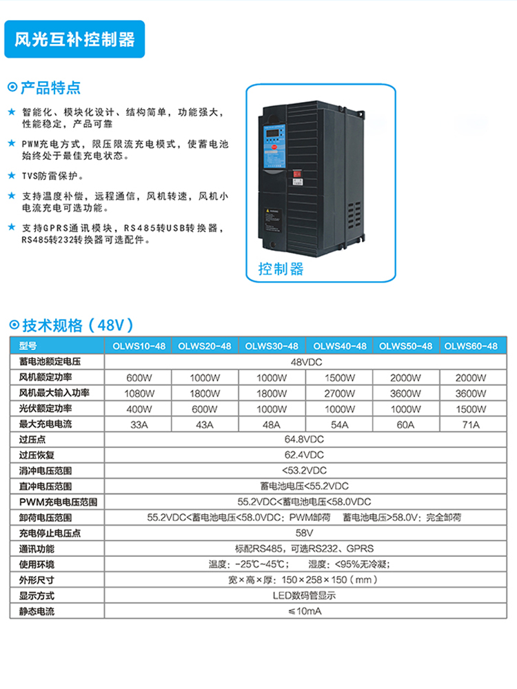 設計為便攜型,重量輕,結構簡單,運行可靠,為城市路燈、監控提供電力。運轉時噪音小,發電量足,效率高。風葉采用高強度復合材料,強度高,韌性好,防紫